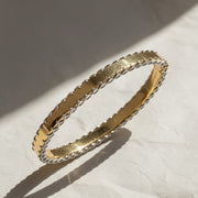 14k Gold Stitched Bangle Bracelet, Chunky Design, Hinged Closure, Gold and White Gold, Elegant Stacking Jewelry, Gift for Girlfriends