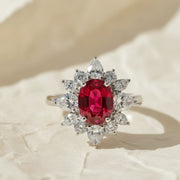 Solid Gold Oval Cut Lab-Grown Ruby Engagement Ring, Proposal Ring, Promise Ring, Art Deco Ring, Anniversary/ Birthday Gift for Women, Wife
