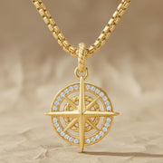 Gold compass pendant necklace, lab-grown diamond, 9K & 14K white/yellow/rose gold, celestial jewelry, navigation symbol, meaningful gift