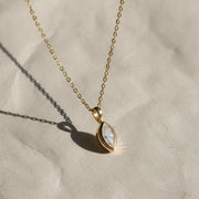 Lab Grown Marquise Diamond Necklace, Bezel Set Pendant in 9K & 14K Gold, Dainty Fine Gold Jewelry, Everyday Gift for Her,Bridesmaid Necklace