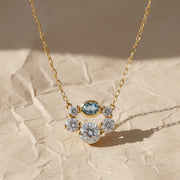 Oval Blue Sapphire Necklace with Lab Grown Diamonds | 14K Gold Bezel Set Necklace Gift for Her