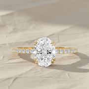 Oval Engagement Ring with Side Diamonds, 14K Solid Gold White, Yellow, Rose Gold, Prong Set, Pavé Band, Bridal Gift for Her