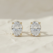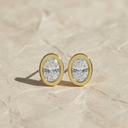 Lab Grown Diamond Earrings, 2CT Oval Bezel Studs in 9K, 14K, 18K Gold – Handmade, Certified Jewelry for Women