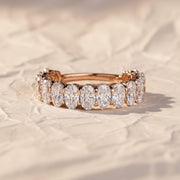 Oval Cut Lab Grown Diamond Wedding Band / CVD Diamond Stone Band / 14K Solid Gold Engagement Band / Hand Made Diamond Anniversary Band