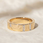 Gold Wedding Band with Baguette Diamonds,14K Solid Gold Engagement Ring, Diamond Wedding Band for Husband, Elegant Gold Ring Wide Band